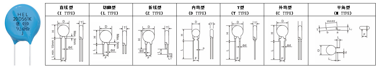 Remark: the Impluse voltage testing standards(1.2/50μs) with 40 times are only applicable to the products which with the varistor voltage more than 430V.